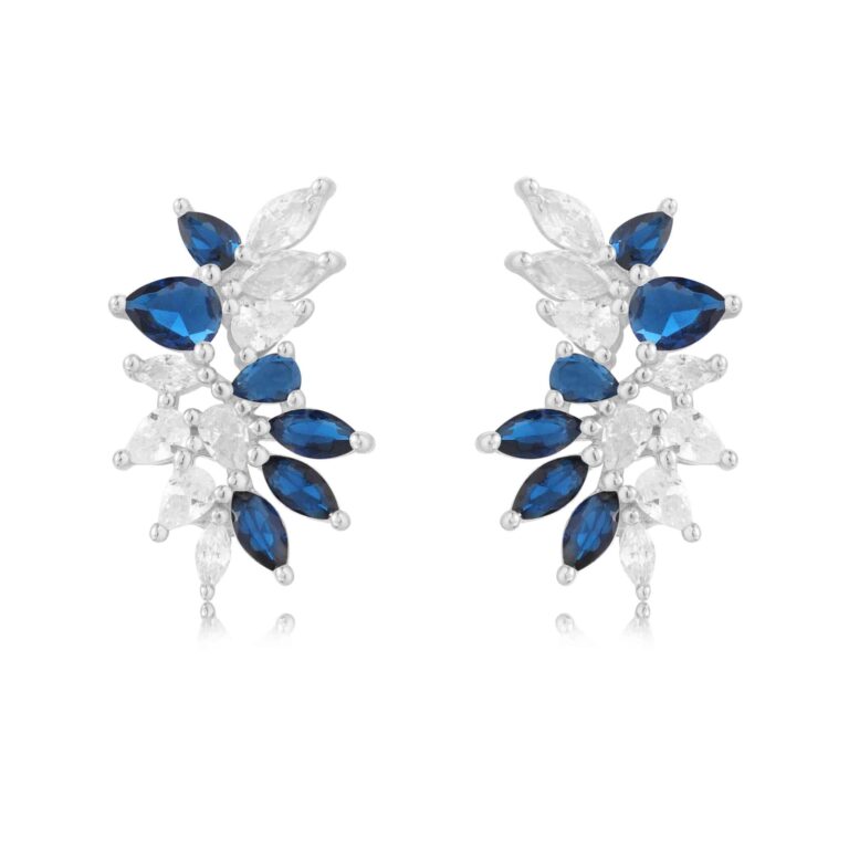 עגיל כסף טהור טבול בזהב לבן בשיבוץ אבני זירקוניה