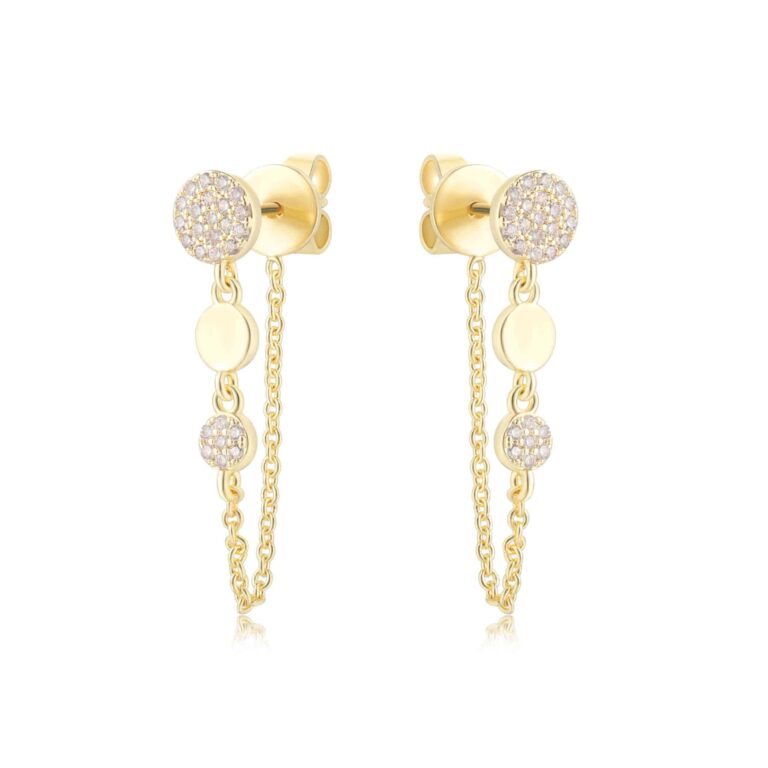 עגיל שרשרת כסף טהור טבול בזהב צהוב עם בשיבוץ זרקוניה