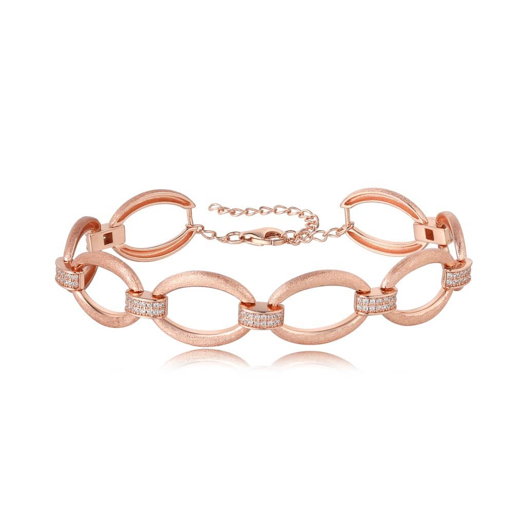 צמיד חוליות אליפסה בשילוב שיבוץ אבני זירקון שקופות עשוי בגימור עבודת יד מכסף.