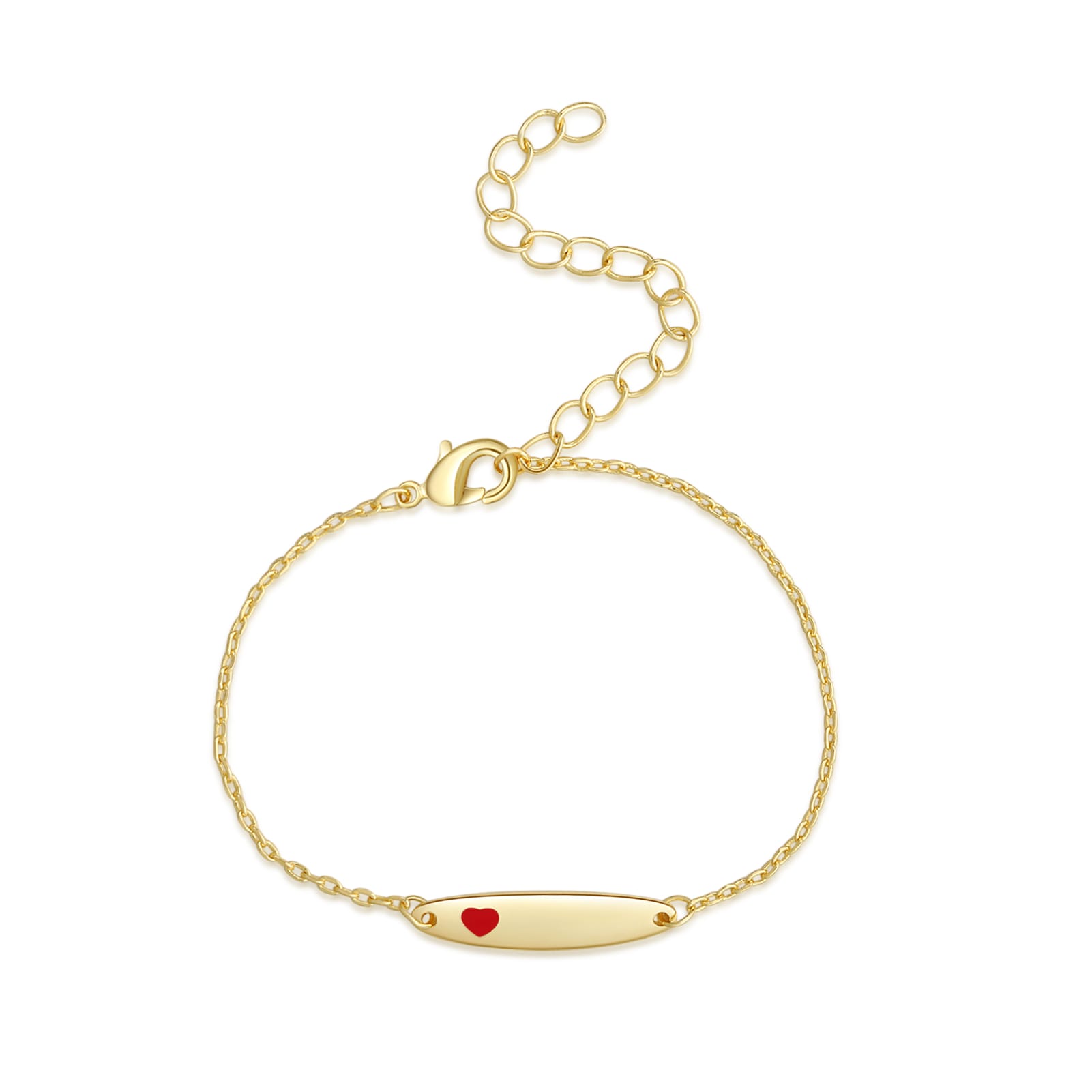 צמיד חריטה בעיצוב חדשני בשילוב לב אמייל אדום