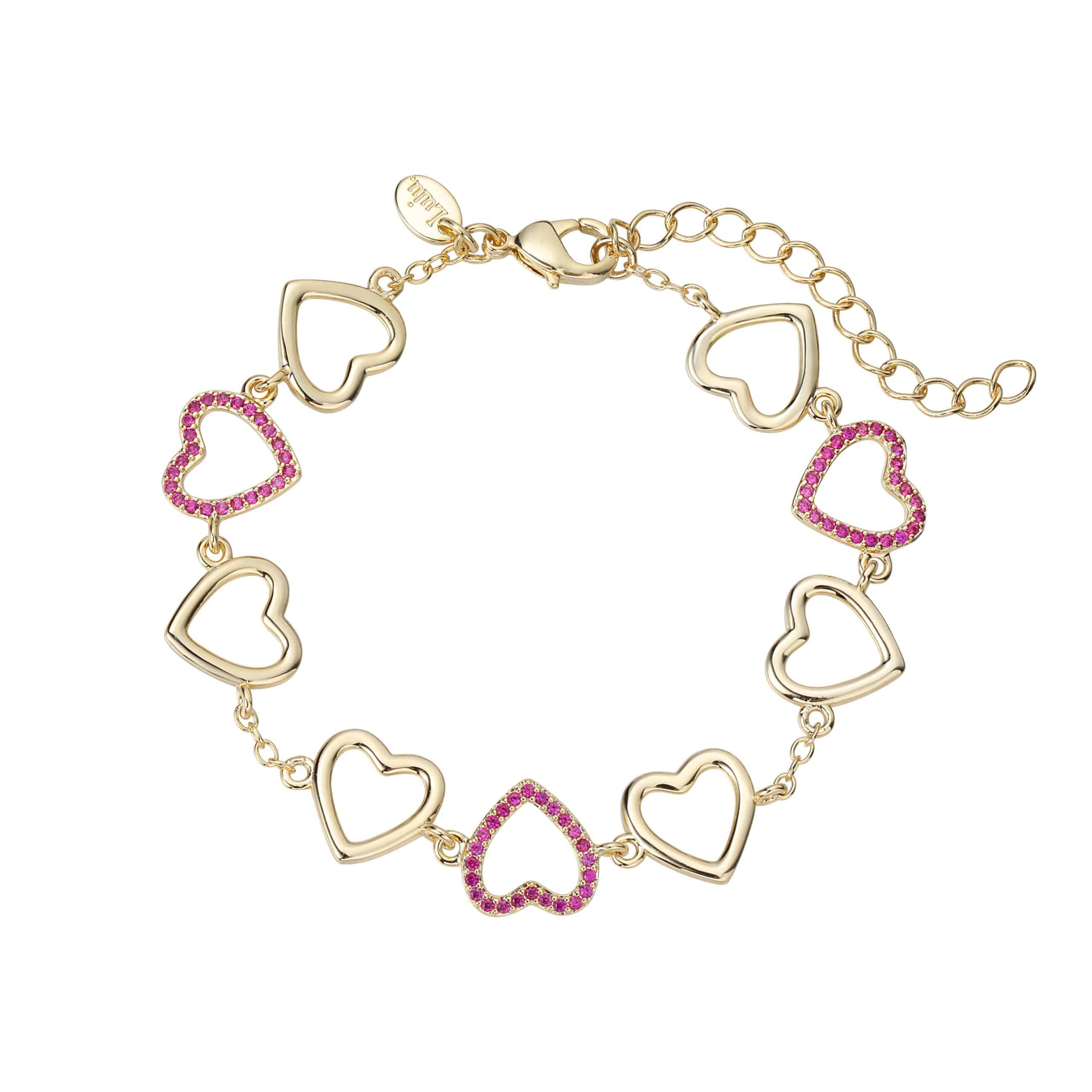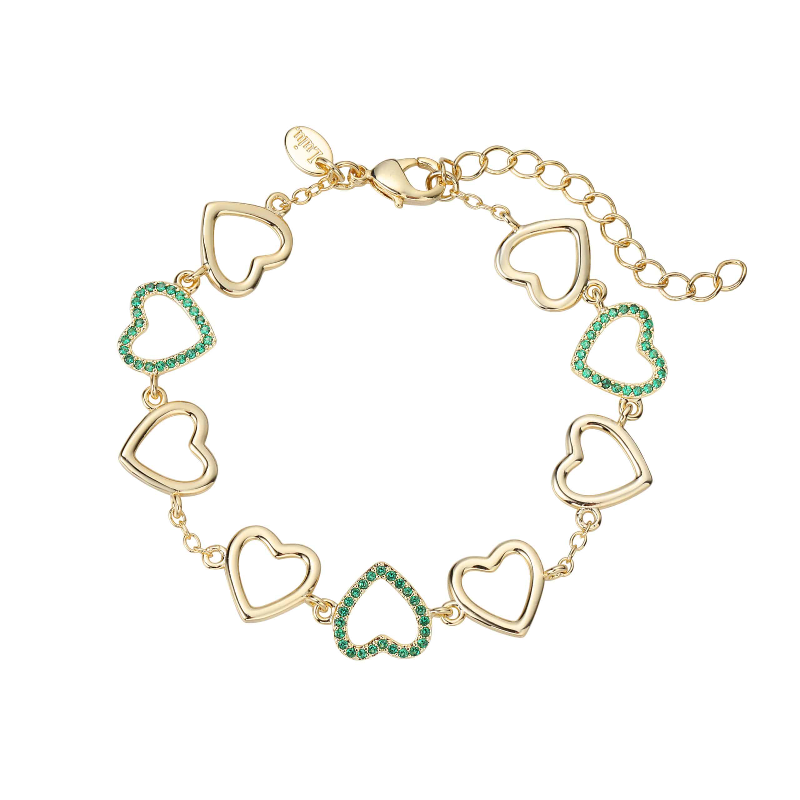 צמיד לבבות חלולים צבעונים משובצים באבני זירקון שקופים גימור עבודת יד כסף טהור.