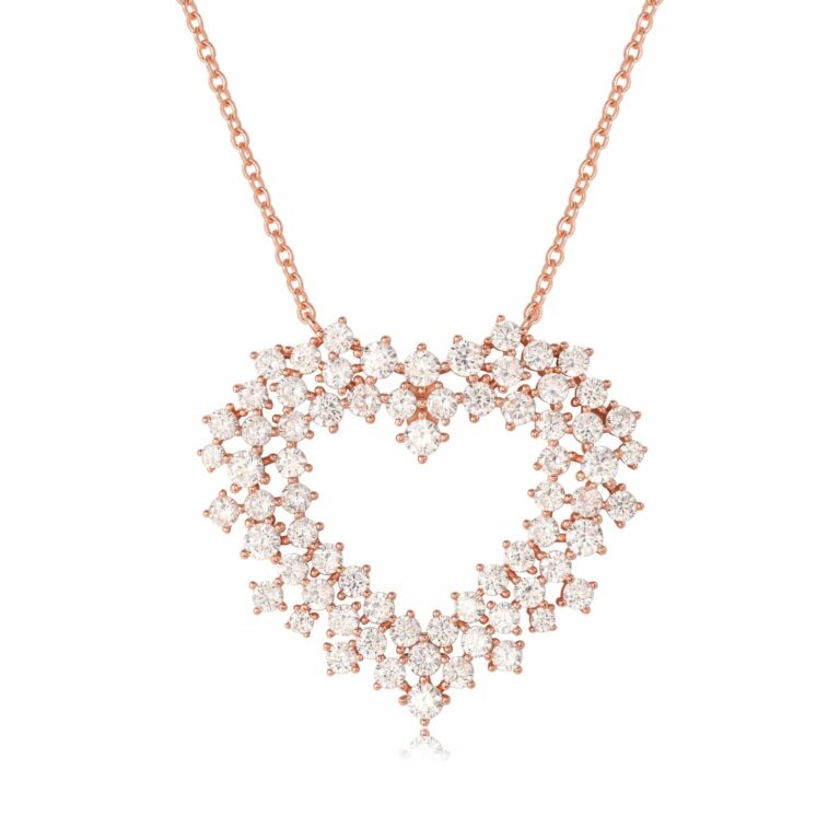 שרשרת לב אבנים משובצת באבני זירקון גימור עבודת יד כסף טהור.