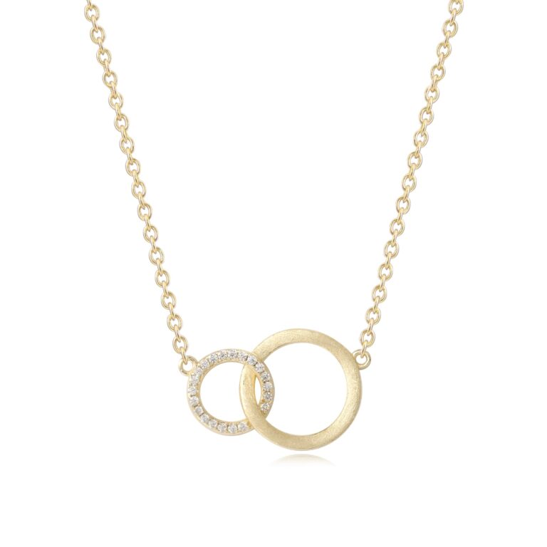 שרשרת כסף טהור עם תליון בצורת עיגוליים שלובים מוברש מט, בשילוב זרקוני לייזר