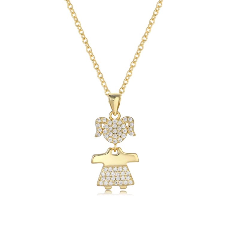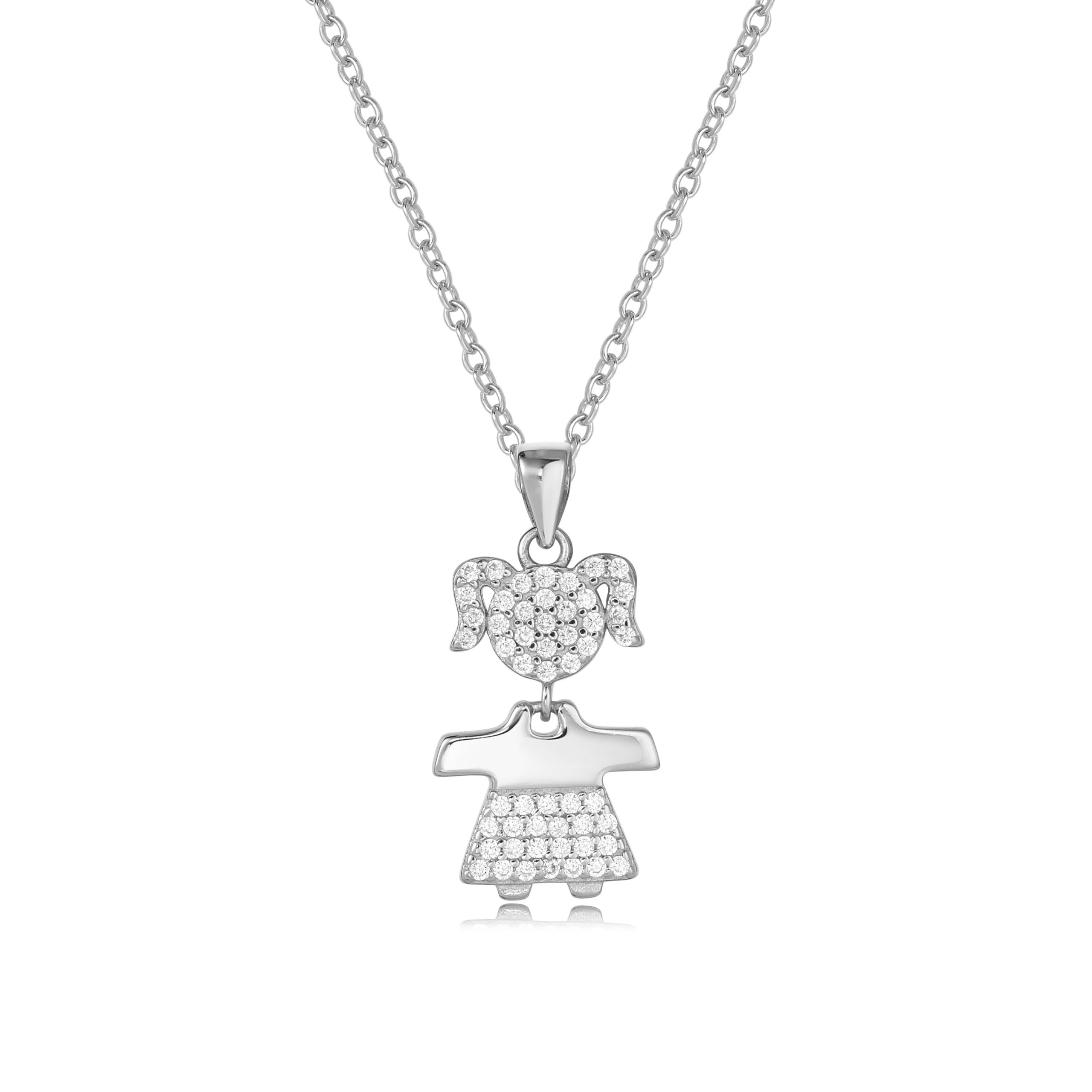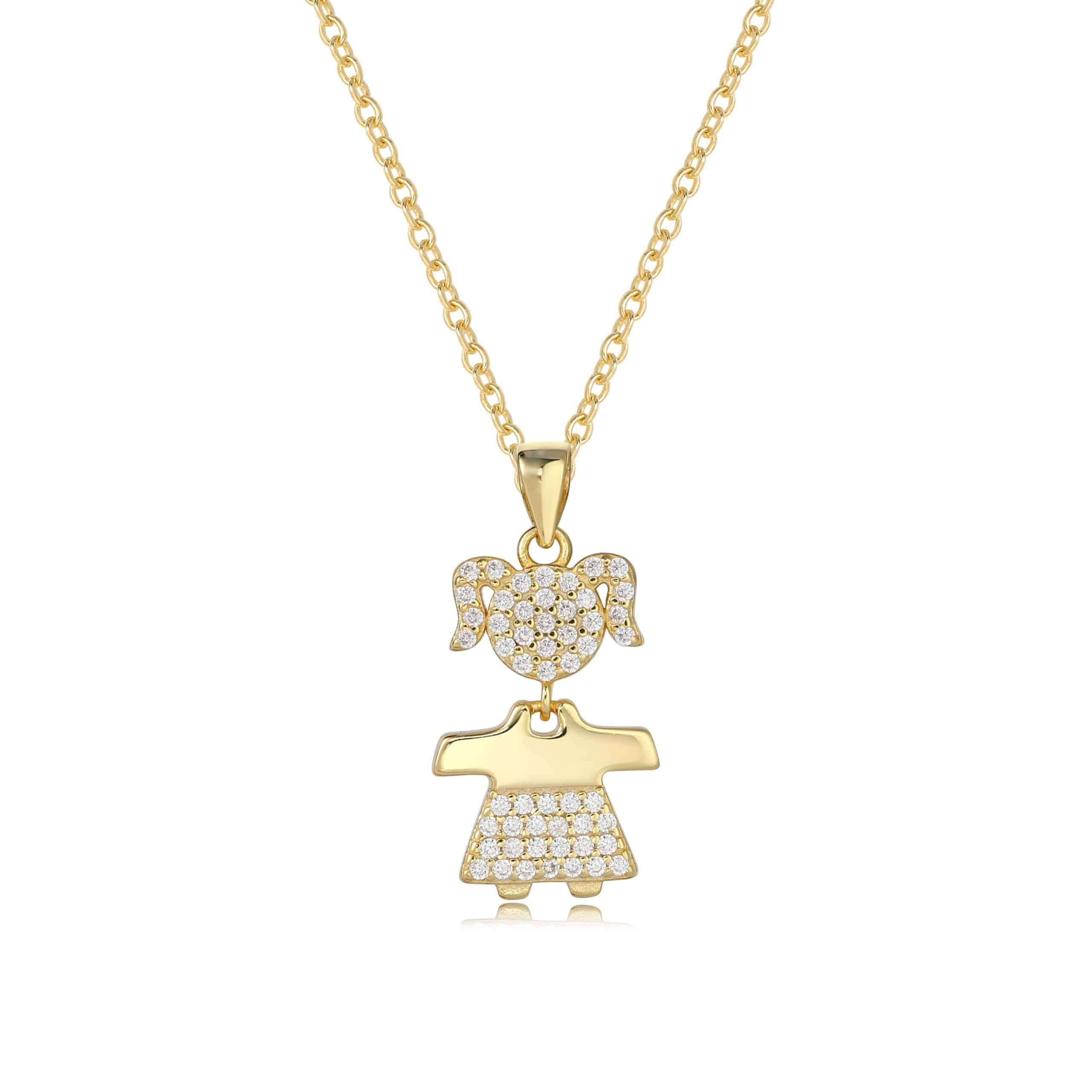 שרשרת צורת ילדה מנצנצת משובצת אבני זירקון זהב גימור עבודת יד כסף טהור .
